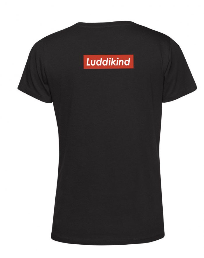 Hochwertiges Luddikind T-shirt mit einem kleinen Luddikind Aufdruck auf der Herzseite und einem großen Logo auf dem Rücken.