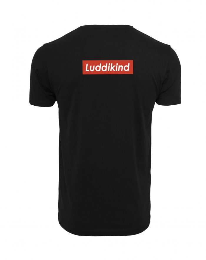 Hochwertiges Luddikind T-shirt mit einem kleinen Luddikind Aufdruck auf der Herzseite und einem großen Logo auf dem Rücken.